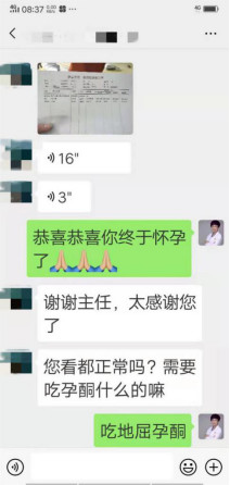 在孟女士接受促排卵治疗的第二个月,突然一天早上,还在外地出差的她给纪清主任打来电话,“主任,好像有浅浅的两道杠~”纪清主任建议她在当地正规医院做个检查。检查结果一出来,她时间拍了张照片发过来,声音中满是抑制不住的激动,“主任,我终于怀孕了!怀孕了!”