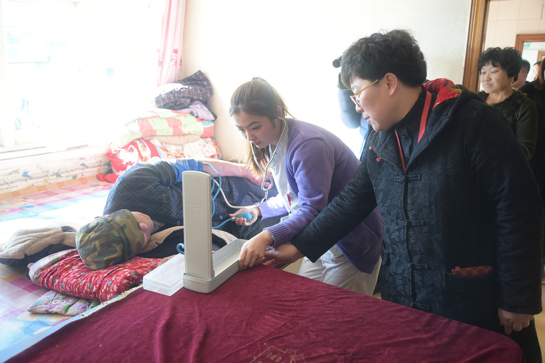 本次慰问活动由大连新百佳妇儿医院党支部书记林杨带队,走访党员家庭、失独家庭、癌症患者家庭等近50个困难家庭,为他们提供量血压等免费医疗服务,送上了米、面、油、台历等爱心物品。