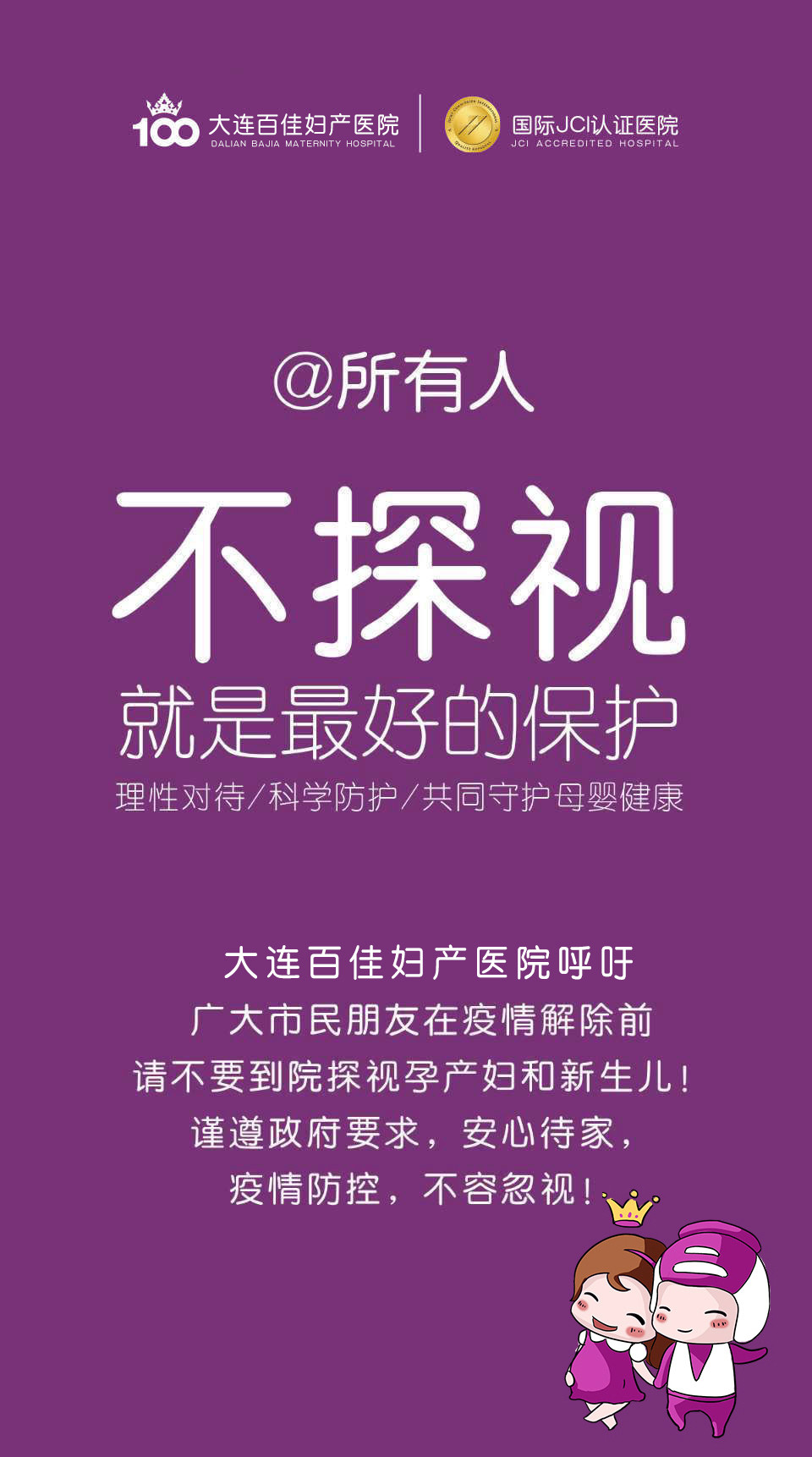 关于探视,在特殊时期,谢绝亲朋好友们探视孕产妇和新生儿,不探视,就是对孕产妇及小宝宝最好的保护!