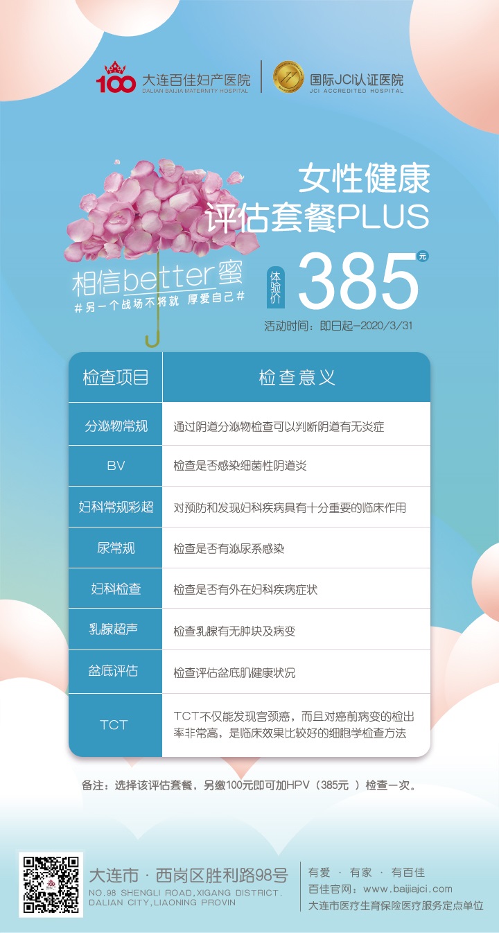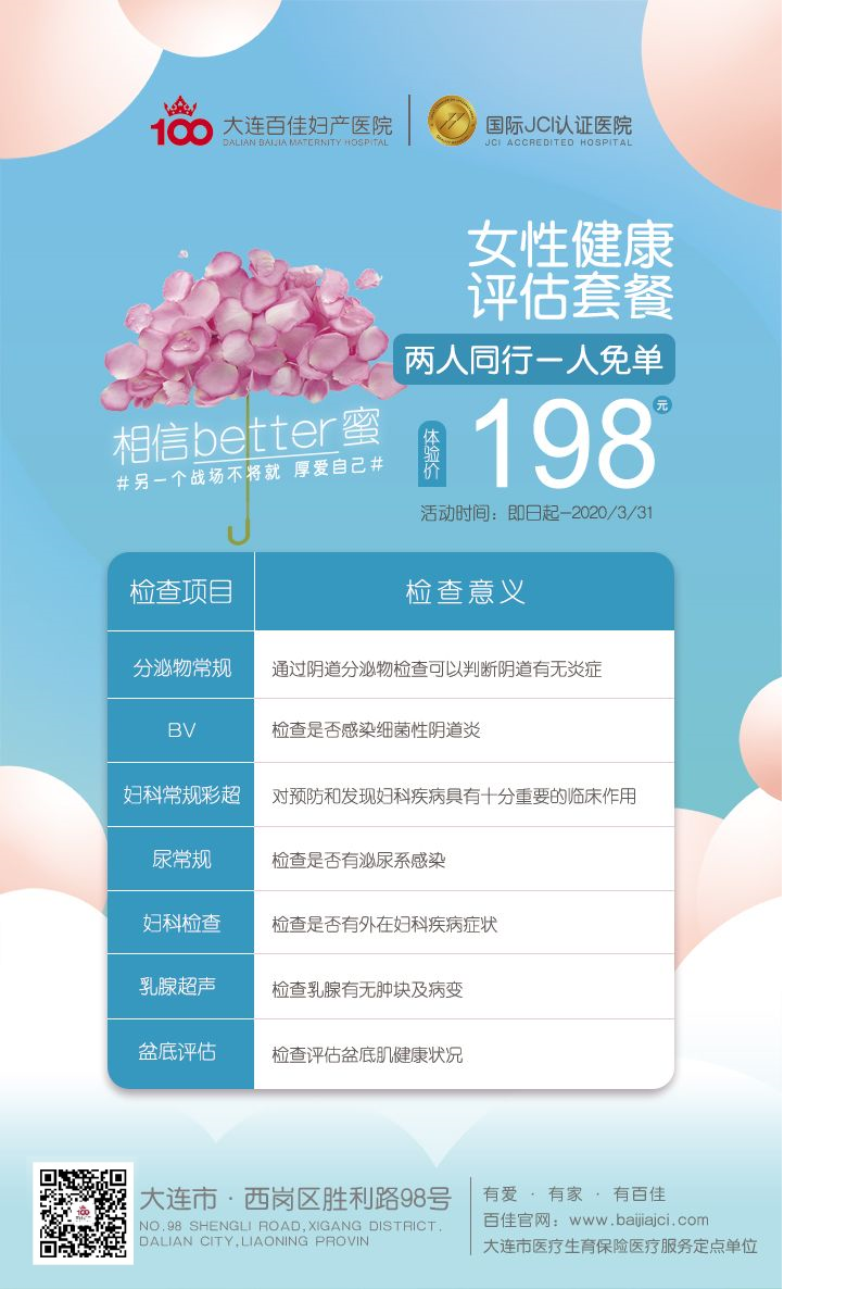 嗨,那些和妈妈同在大连生活的小仙女们,首先不得不说这是一份幸运,然后也祝福妈妈们能快乐随行,3月,一份女性健康评估套餐推荐给你和妈妈,【两人同行,一人免单】,约过饭、约过散步、约过逛街,那么这次一起约一份”健康“吧。