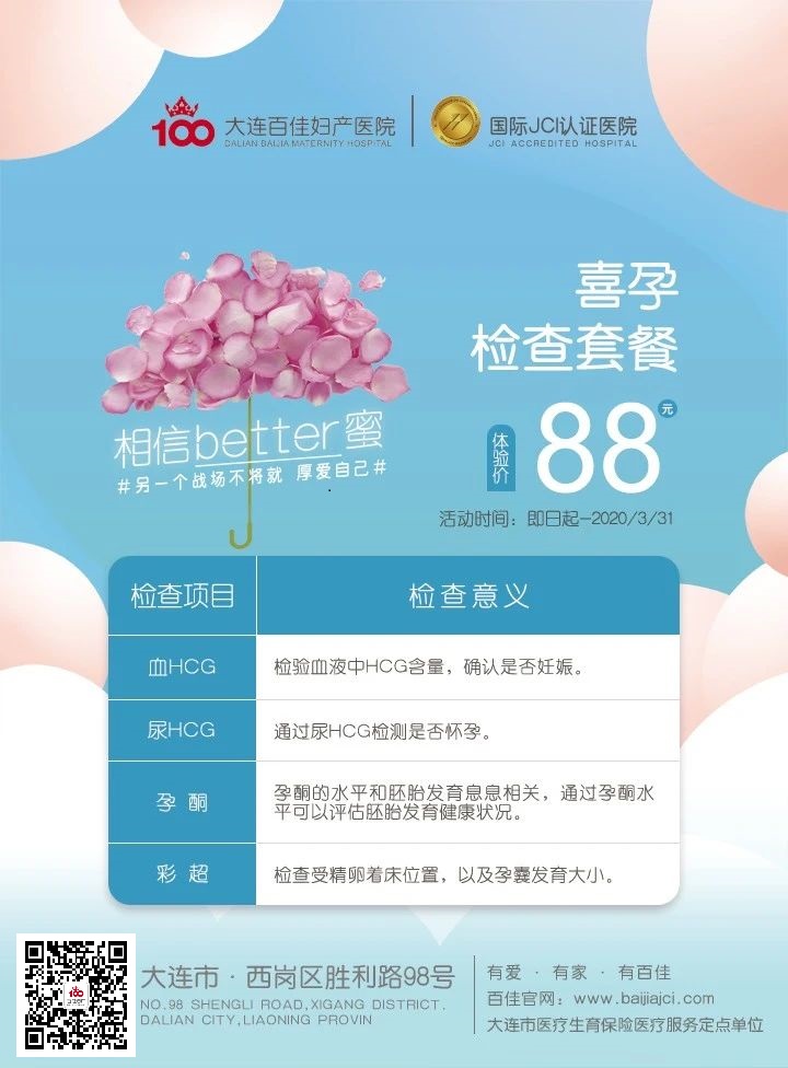 发现怀孕的时候记得,及时做个孕早期的产检,百佳闺蜜节,喜孕检查仅需88元,确认是否妊娠,筛查宫外孕,助您好孕哦