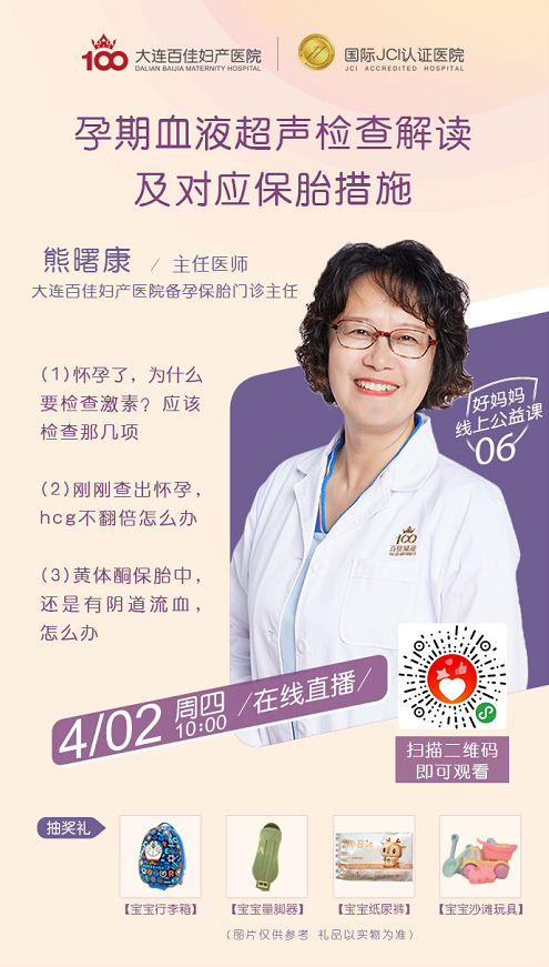4月2日百佳备孕保胎门诊熊曙康主任,将为大家带来线上直播课——孕期血液超声检查解读及对应保胎措施,欢迎大家准时收听坚持和努力,让希望永远都在,我们期待迎来更多,健康宝宝幸福妈妈