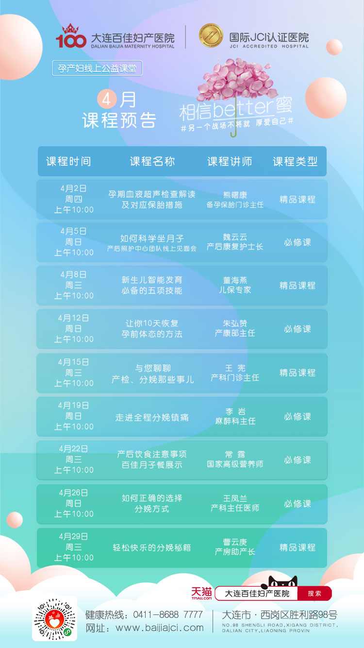 大连新百佳妇儿医院线上课堂|4月直播课表已出炉