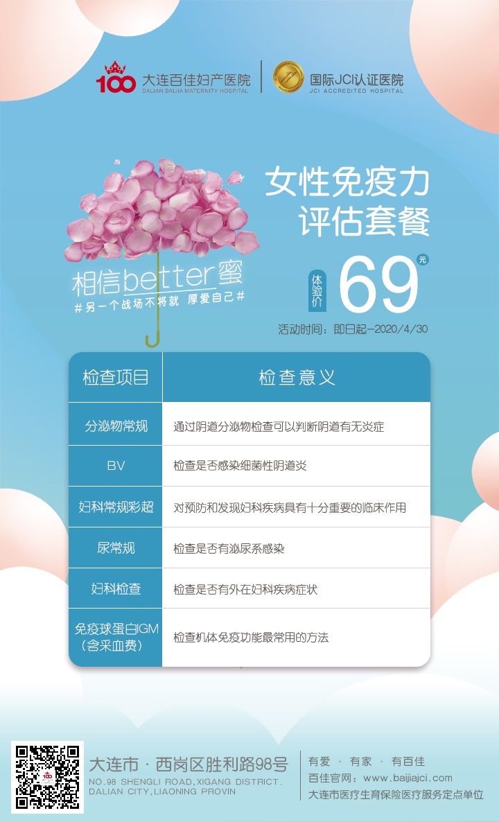 大连新百佳妇儿医院秉承”以顾客为中心“的管理与服务理念,以安全和质量为优先,可提供包括妇科检查、备孕、分娩、产后康复、女性健康管理、女性私密整形等在内的综合女性健康服务