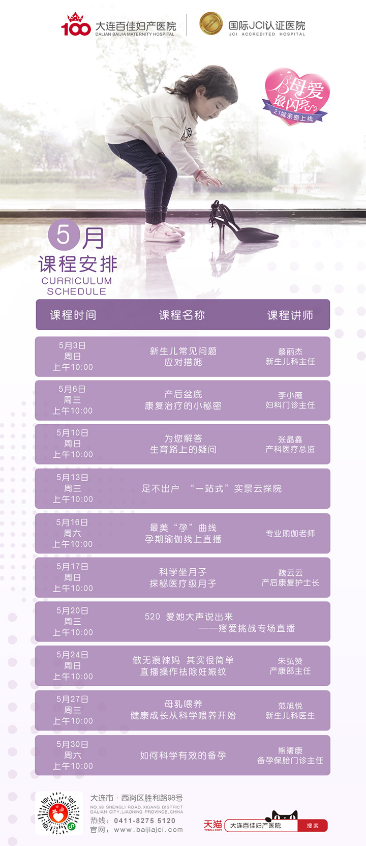 大连新百佳妇儿医院5月好妈妈线上课表出来啦,宝妈们约起来