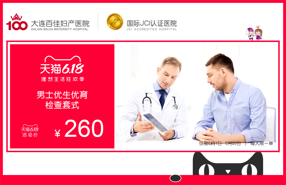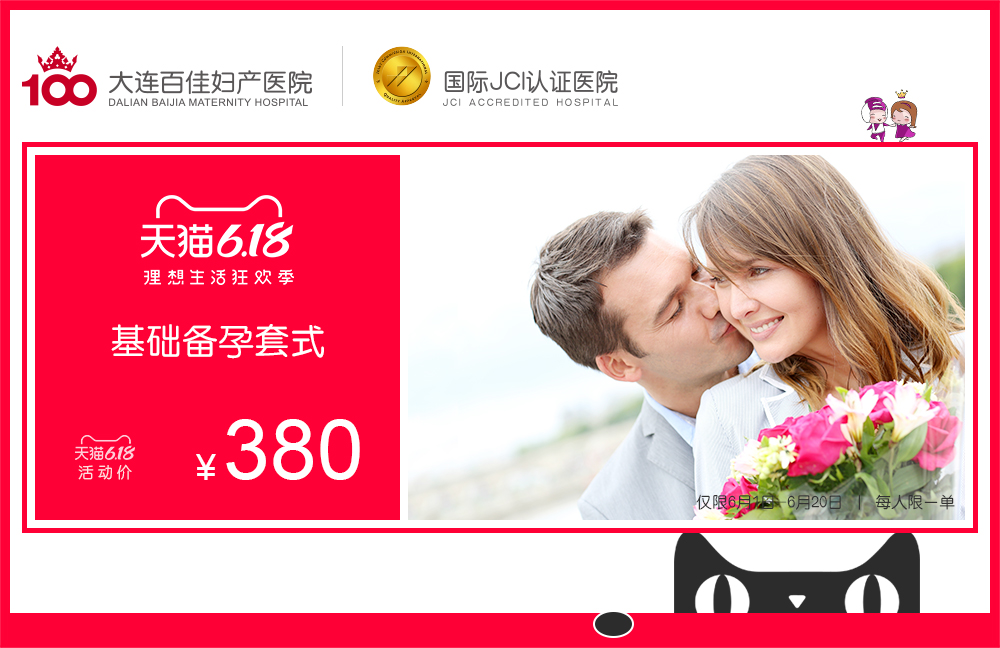 生个健康的宝宝,是每个家庭最期待的事情,你是否期待着宝宝的到来,但是不知道自己身体是否处于一个最佳状态?备孕夫妻应积极做好孕前检查,大连新百佳妇儿医院专家也将为您提供孕前指导,孕期保健、合理营养等一系列指导,为妈妈和宝宝保驾护航,618狂欢节,我们为大家准备了很多福利,超级划算,更多优惠