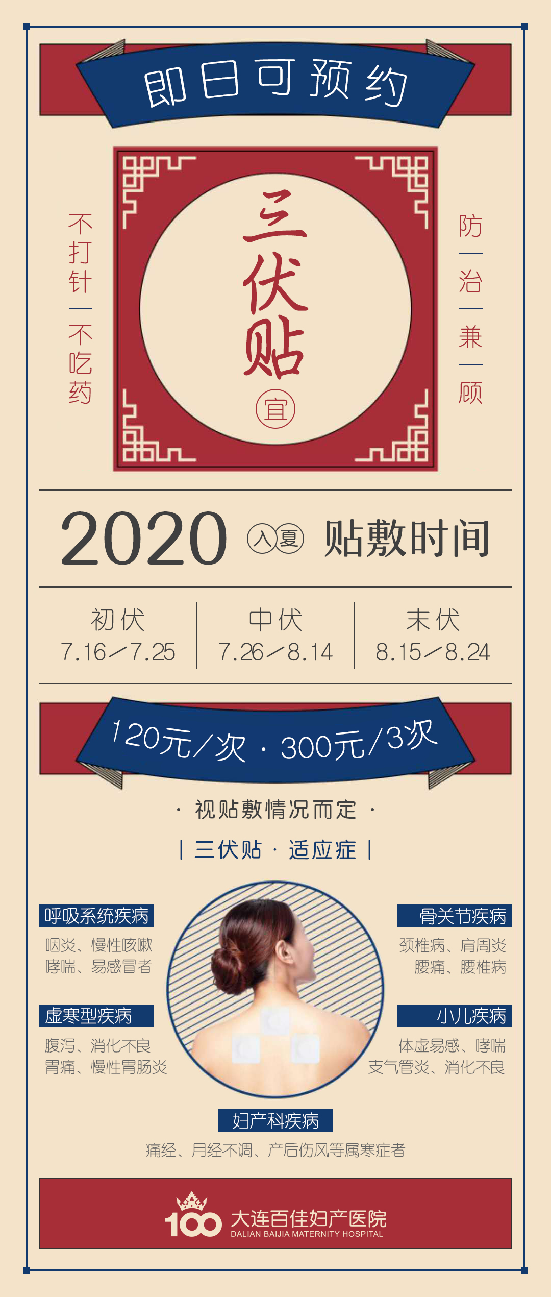 2.三伏贴即将开贴,怎么贴有讲究~新百佳妇儿采用资深中医科指导专家特制配方,对不同体质的儿童给予针对性的穴位贴敷治疗,个性化的方案让疗效更加显著。