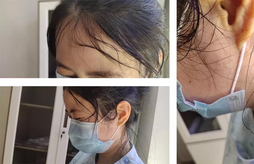 白天温度很高,在穿着短袖都嫌热的天气里,这位导诊小姐姐要穿着厚厚的防护衣,在户外站一天,不断提醒客户扫码为客户量体温、进行手消毒不一会儿,防护衣内的衣服就湿透了,做核酸检测的护士小姐姐,去掉口罩和防护服后,汗水顺着头发往下滴,人像从水里捞出来的,
