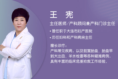 王宪主任曾任职于大连市妇产医院,历任妇科和产科病房主任、妇科门诊主任、妇产医院VIP病房主任,具有丰富的妇产科临床诊疗和手术经验。擅长诊疗:产科常见疾病,以及前置胎盘、胎盘早剥大出血、羊水栓塞等各种疑难病例,具有丰富的临床危重抢救工作经验。