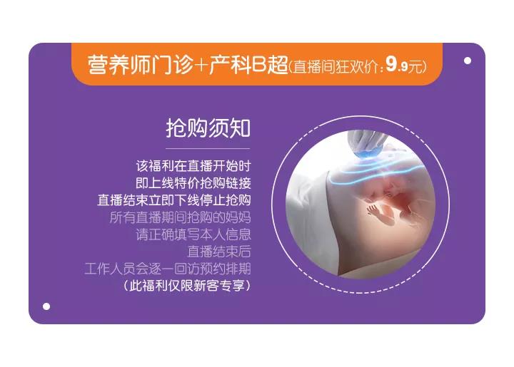 【营养师门诊+孕期礼包】,直播间狂欢价:9.9元(仅限老客专享)