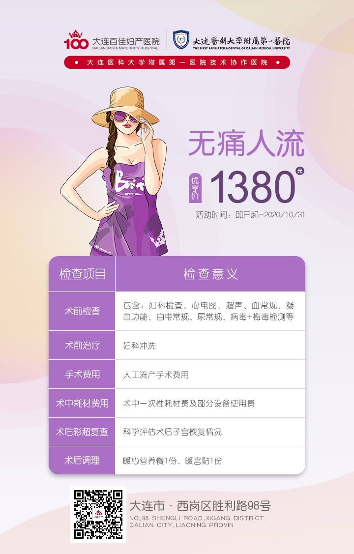 大连新百佳妇儿医院专家温馨提示:以上就是”做无痛人流的费用“的文章内容,人流手术的收费程度会因每个人的身体状况而有所不同,女性在选择手术时应该选择正规的人流医院进行手术。
