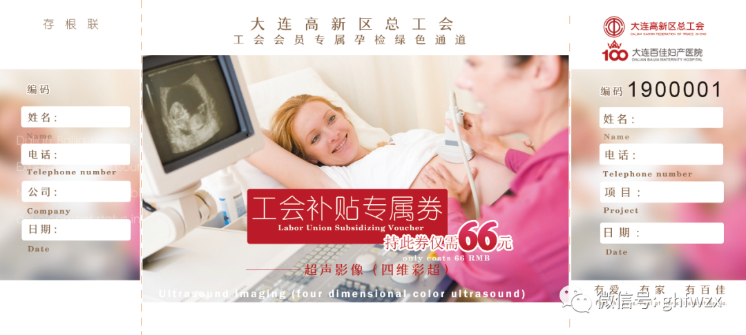 孕妈福利来啦!2020年高新园区工会会员孕检补贴券发放开始啦!领取补贴券后到大连新百佳妇儿医院进行超声影像(四维彩超)检查,个人仅需支付66元费用,其余费用由大连高新区总工会统一补贴支付
