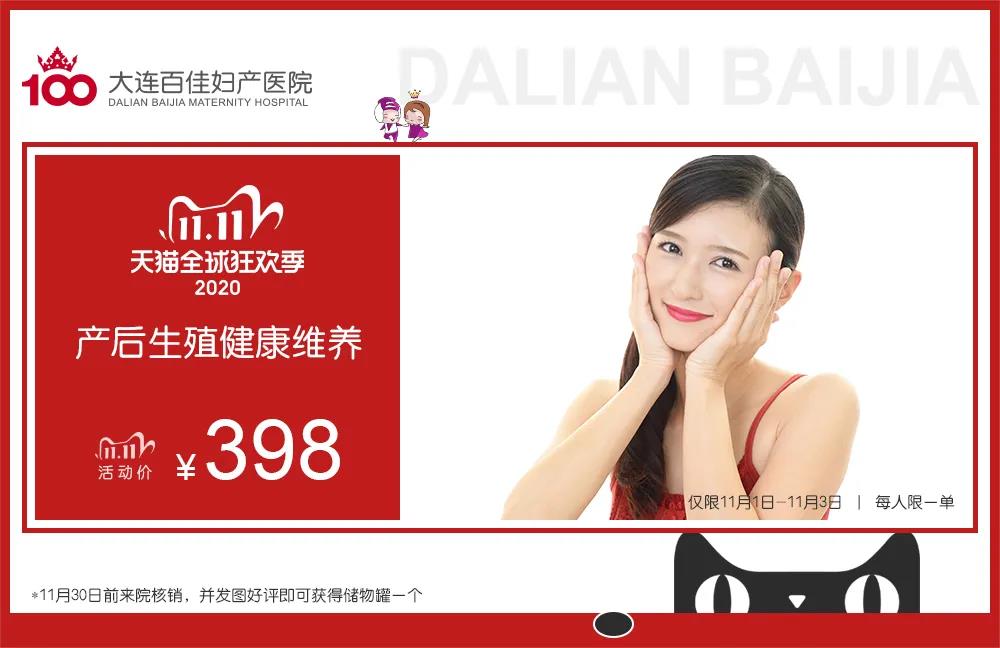 双11辣妈嗨购,大连新百佳妇儿医院精心呵护女性健康,为不同需求宝妈量身定制,多款产后修复套餐,总有一款,适合你,快来pick一下你心仪的它!