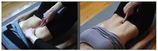 1.仰面平躺,膝盖弯曲,双手交叉抱肩,检查者手指放在肚脐位置上;
