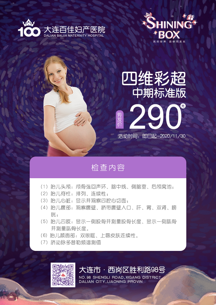 大连新百佳妇儿医院提醒,是在"二维"、"三维"的基础上,更直观更清晰地呈现胎儿在宫内的动态图像,多方位、多角度地观察胎宝宝的生长发育情况,还能够对孕妇潜藏的各类疾病进行精确检测,确保母婴健康。