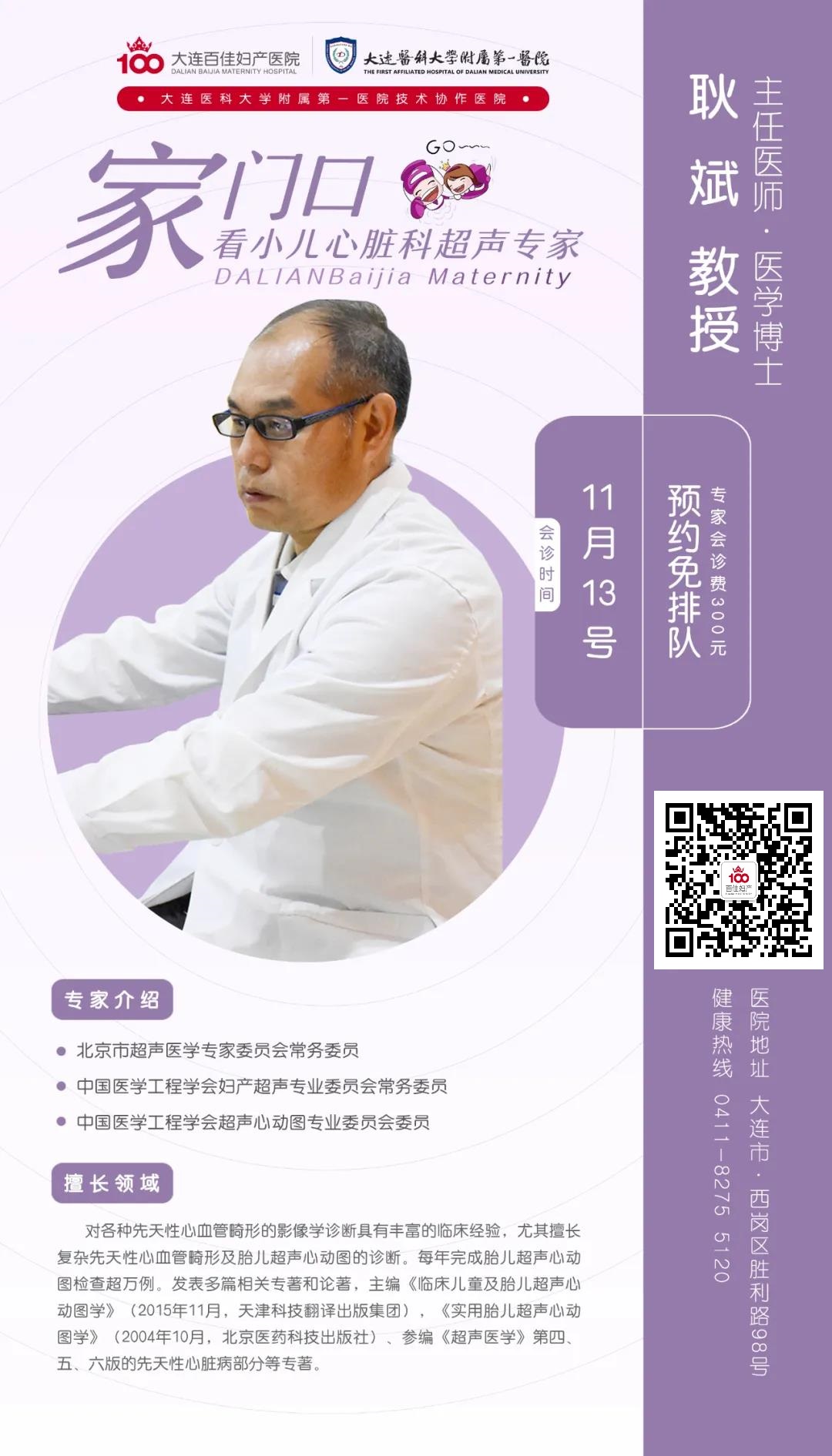 11月13日大连新百佳妇儿预约北京安贞医院耿斌教授来连会诊丨排查