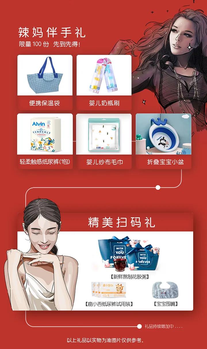 婴儿奶瓶刷,纸尿裤,纱布毛巾新鲜熬制花胶粥......100份伴手礼还有精美扫码礼,活动当天,等你来领取!