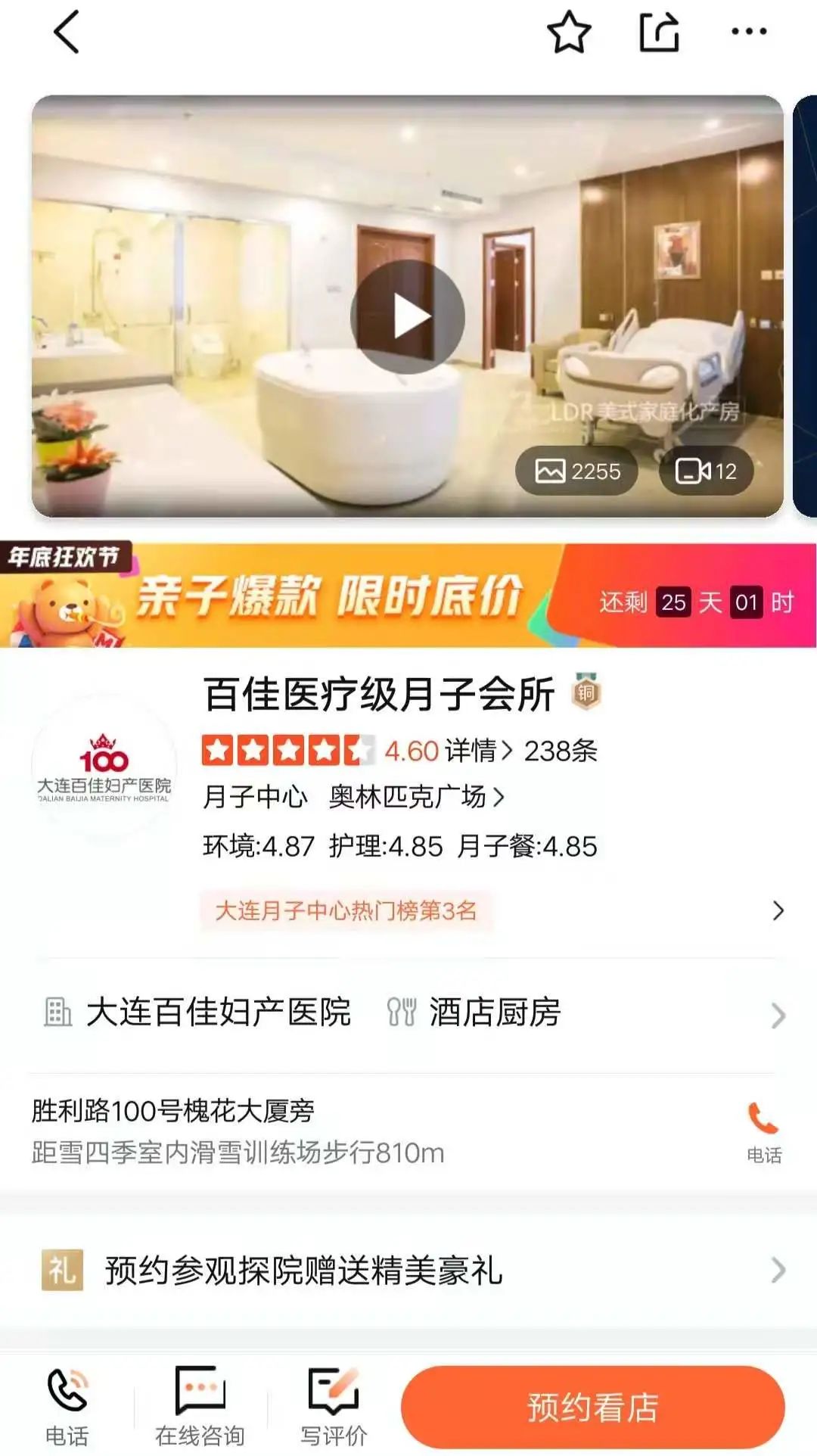 其实在”大众点评“的APP上,有很多医院几乎是两星到三星的评价,基本不过三星半,而大连新百佳妇儿医院的医疗级月子中心则是四星到四星半好评。
