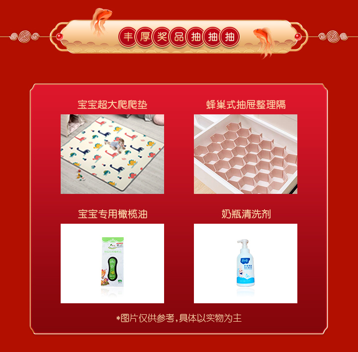 01丰厚奖品抽抽抽,宝宝超大爬爬垫,专用橄榄油,奶瓶清洁剂......直播课上,抽奖好礼轮番开启,丰厚奖品等你领回家!
