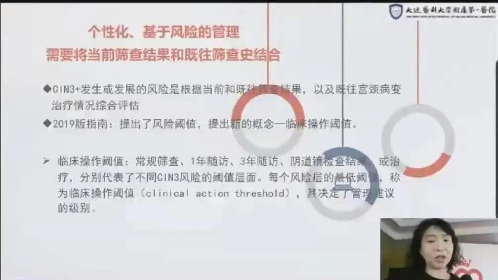 大连医科大学附属第一医院妇产科教研室副主任商宇红通过2019ASCCP基于风险的宫颈癌筛查结果异常和癌前病变的管理指南的解读,结合在临床上遇到的各种案例处理方法,规范了我们在临床上遇到各种宫颈癌筛查及癌前病变结果异常的诊疗流程。