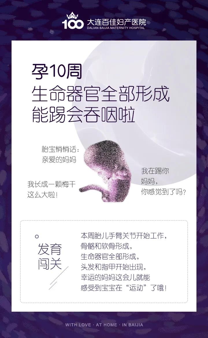 大连新百佳妇儿医院提醒,妈妈的身心:孕10周时,您的情绪波动很大,刚刚脸上还是晴空万里,可能一会儿就变成乌云密布了。有些孕妇可能会对这种变化莫测的情绪感到不安,但这都很正常,是孕期雌激素作用的结果。