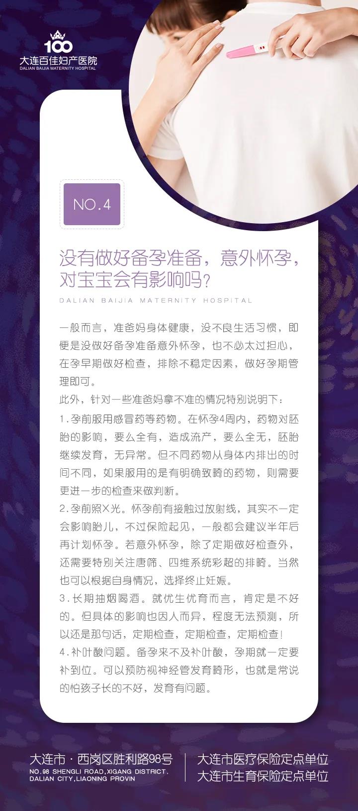 大连新百佳妇儿医院妇科医生纪清带您了解,其实这个不是绝对的,要看看在意外怀孕之前你做过什么,如果平时身体健康,没有不良生活习惯,即便是没做好备孕准备意外怀孕,也不必太过担心,做好孕期检查即可。