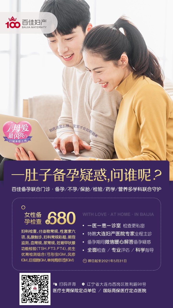 大连新百佳妇儿医院也为男性,特别准备了备孕检查套式,助夫妻双方好孕