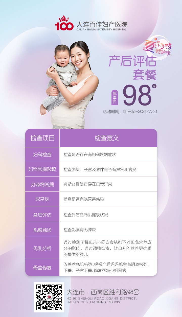 大连新百佳妇儿医院表示,通过检查,一是可以明确身体恢复的情况,二是及时发现问题,早治疗早受益。