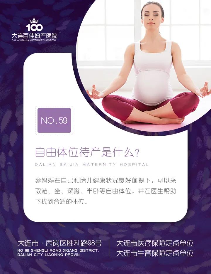 大连新百佳妇儿医院表示,自由体位,就是孕妇在待产的过程中采取卧、走、坐、跪、立、趴、蹲等自己感到舒适,并能缓解疼痛的姿势,而不是静卧在床或固定某种体位。