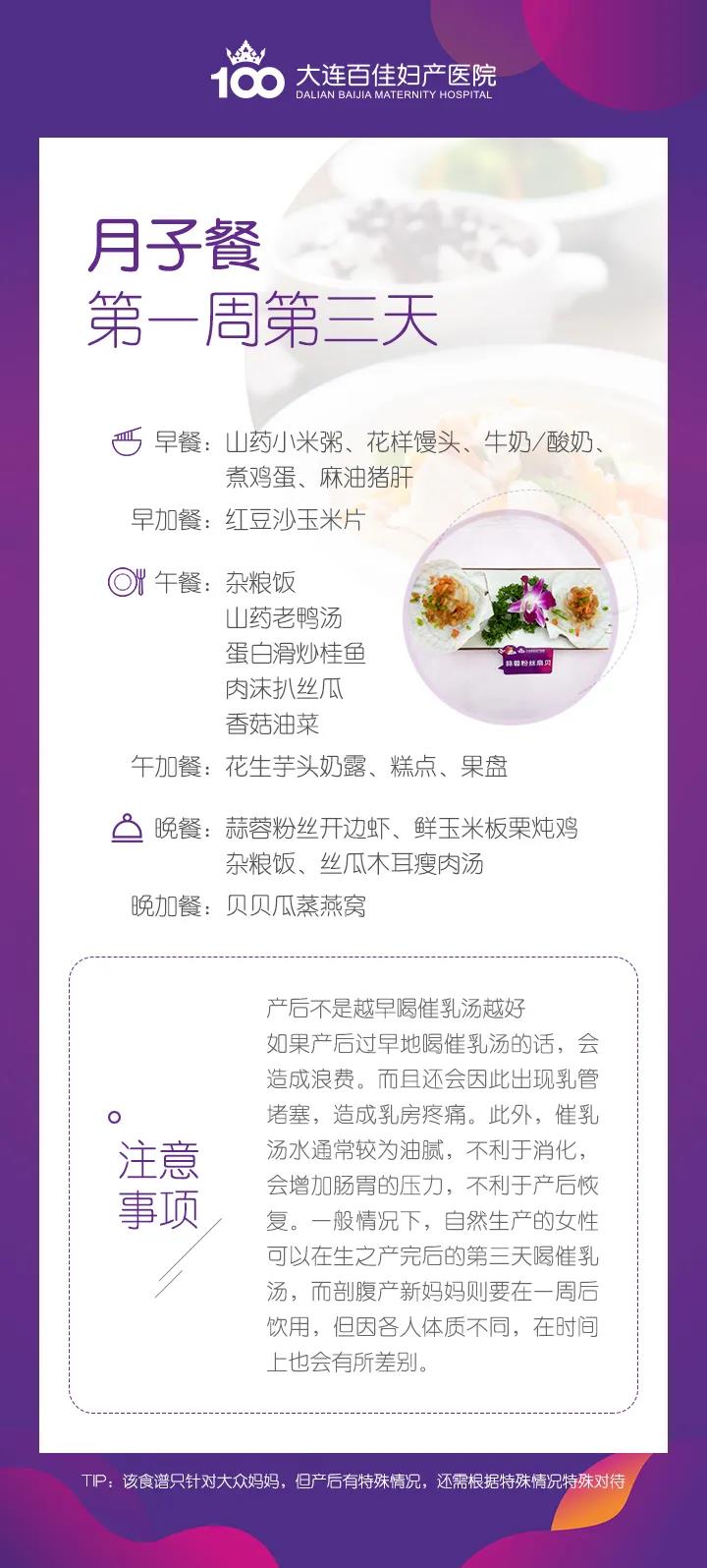 大连新百佳妇儿医院月子餐食谱,第一周第三天怎么吃?大连新百佳妇儿医院月子营养师带您了解,第一周第三天月子餐食谱建议
