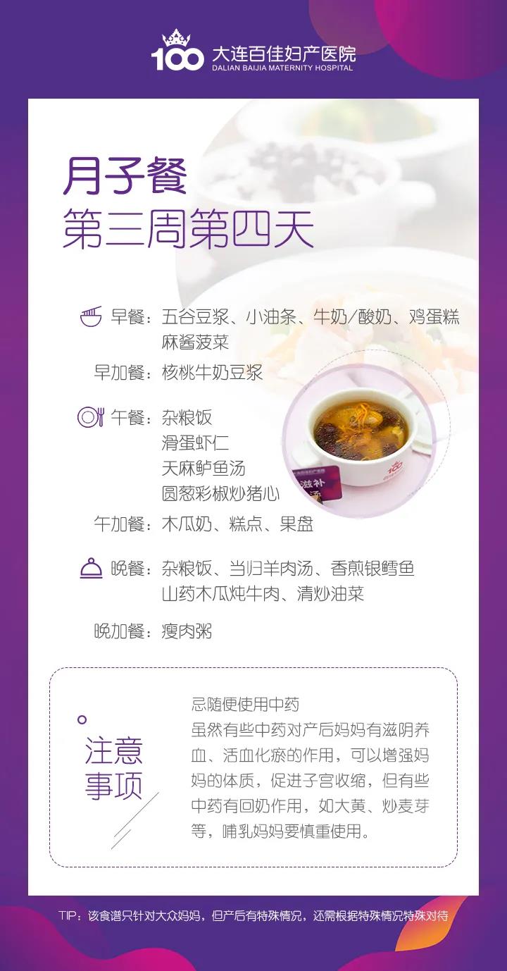 大连新百佳妇儿医院产后月子餐第三周第四天怎么吃
