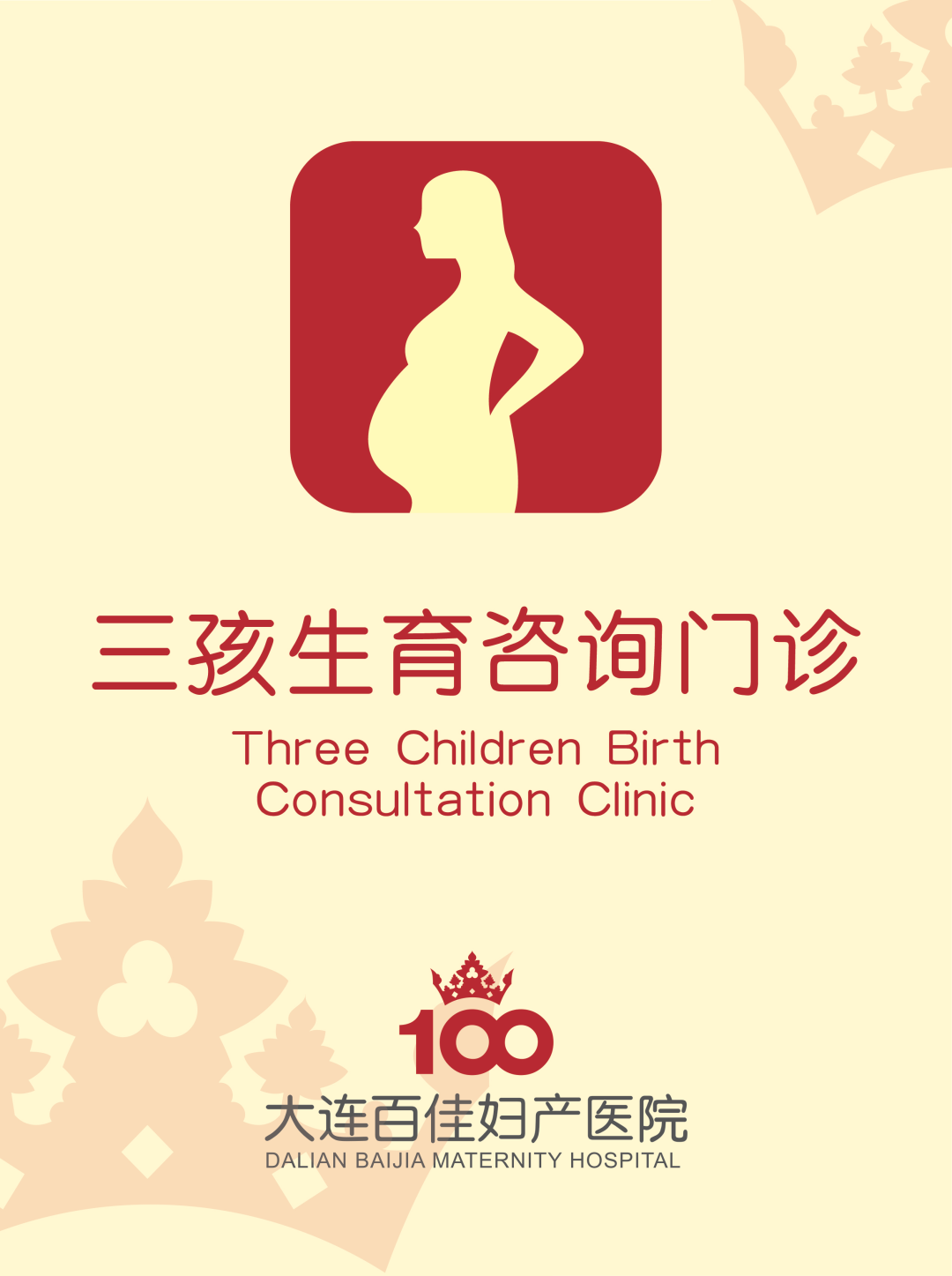 大连新百佳妇儿医院表示,不论是生一胎、二胎还是三胎,每一次生育都请科学对待,做到科学备孕,生育健康宝宝,大连新百佳妇儿医院三孩生育咨询门诊,将为您生育健康医路保驾护航!
