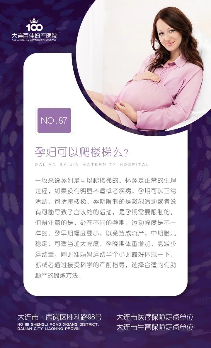 大连新百佳妇儿医院产科检查,孕妇可以爬楼梯吗_大连妇产医院。大连新百佳妇儿医院产科医生王宪带您了解,大家都知道,孕妇的身体是很”娇贵“的,所以在平时的生活中,一般人都会主动帮助孕妇。很多孕妈妈为了安胎,也养成了少动的生活习惯,很少尝试强度较大的运动。