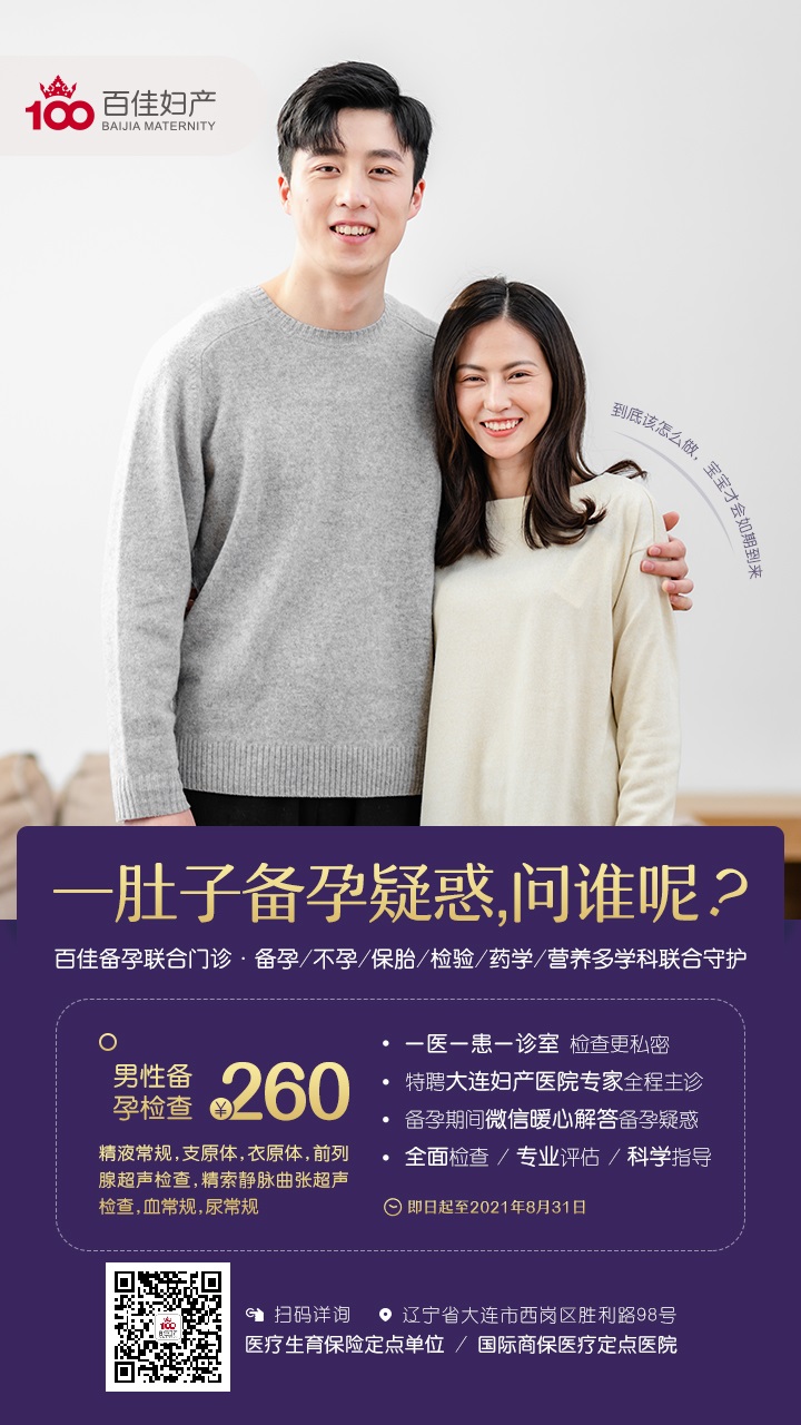 大连新百佳妇儿医院提醒,男士同样也需要做检查哦!总之,并不是所有的不孕症都需要做试管,根据不同患者的具体情况具体分析,采用个性化,综合性的治疗手段。