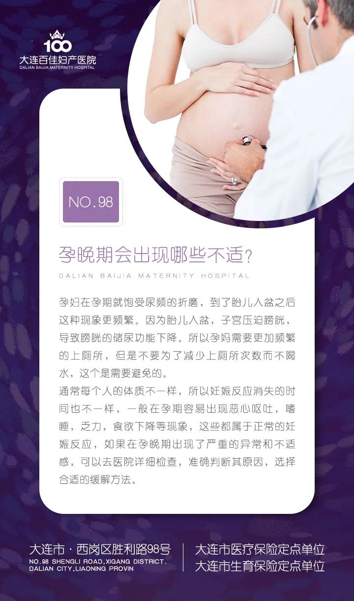 大连新百佳妇儿医院孕晚期产检,孕晚期会出现哪些不适?大连新百佳妇儿医院产科医生王宪带您了解,随着宝宝的发育宝妈的压力也越大,十月怀胎到了孕晚期一些不适现象越来越明显,下面来讲一下宝妈孕晚期会出现不适情况的解决方法吧。