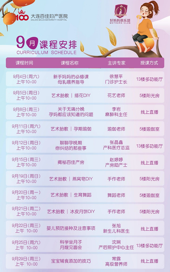 9月课表新鲜出炉啦,宝妈们快点做笔记啦