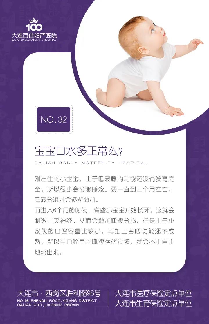 大连新百佳妇儿医院儿科体检价格,宝宝口水多正常吗?大连新百佳妇儿医院儿科医生丁伟带您了解,其实小宝宝流口水原因有很多。有的婴儿在出生后2~4个月开始流口水,以后越来越多,特别是在5~6个月时更加显著。初生时,唾液腺还没有发育好,到3~4个月以后发育逐渐成熟,唾液分泌也就逐渐增加,到5~6个月出牙时又刺激了局部的神经,使唾液腺分泌更多,而这时宝宝尚不习惯吞咽唾液,再加上口腔又浅,所以唾液不断往外流。