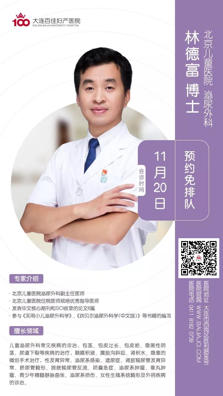 11月20日首都医科大学附属北京儿童医院,林德富博士,将亲临大连新百佳会诊应用”精细化包皮环切术“帮助男宝轻松安全完成”丁丁历险记“