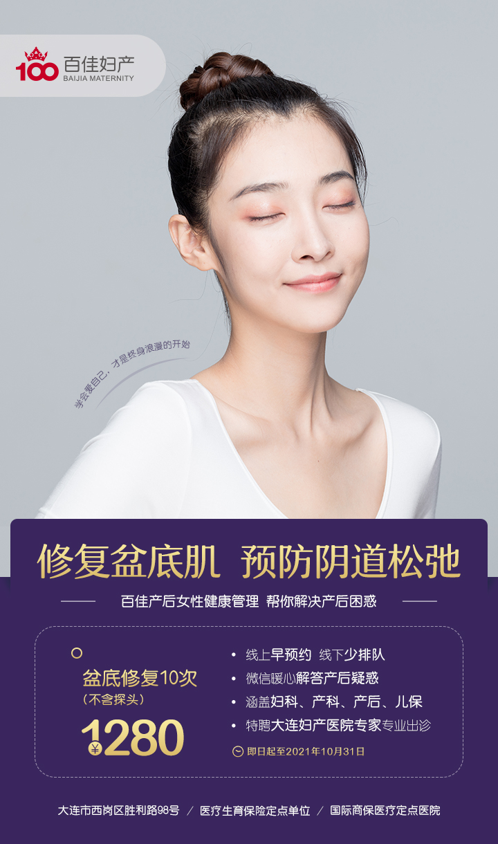 大连新百佳妇儿医院温馨提示:产后半年内是盆底肌恢复的黄金时期,产后超过42天、子宫恢复良好、无感染的女性可及时到医院进行盆底肌检测及康复,这样有利于及时发现并减少盆腔器官脱垂、阴道松弛以及尿失禁等盆底功能障碍性疾病的发生。