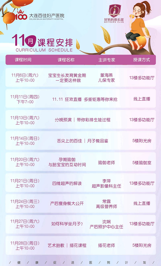 大连新百佳妇儿医院好妈妈俱乐部,2021年11月课表新鲜出炉啦,宝妈们快点做笔记啦