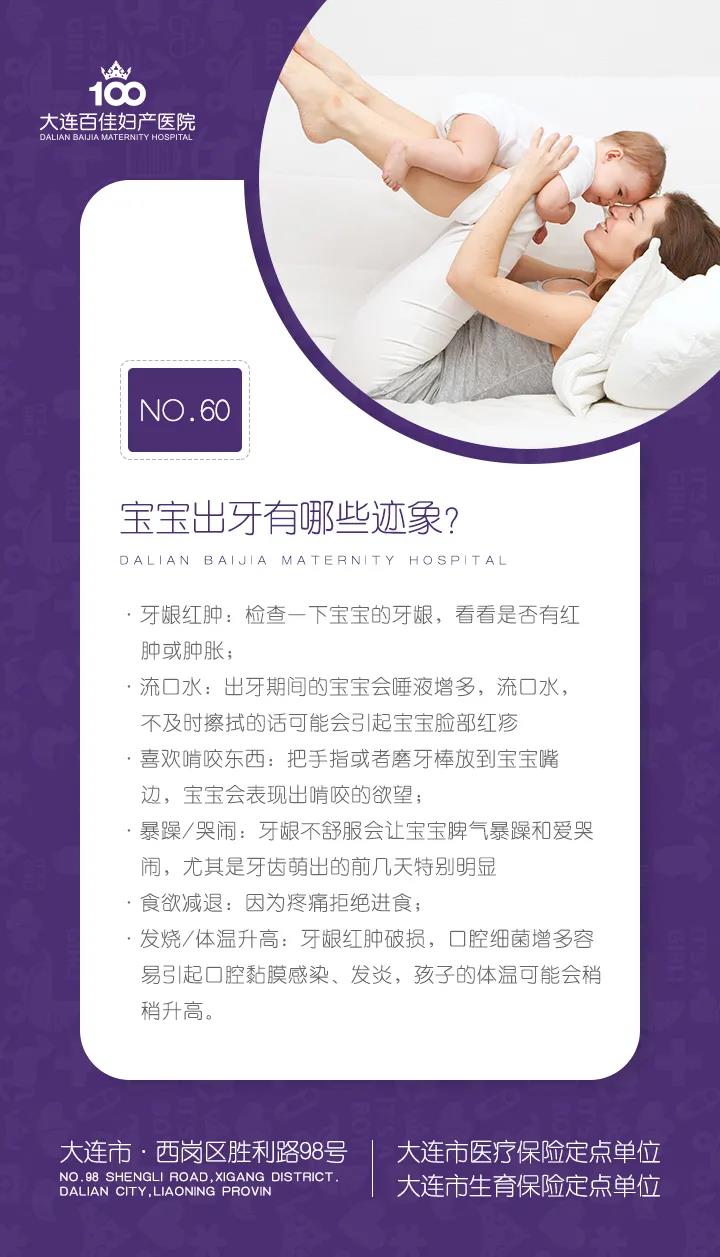大连新百佳妇儿医院儿童体检,宝宝出牙有哪些迹象?大连新百佳妇儿医院儿科医生带您了解,小宝宝出牙的初期症状是多种多样的,那么该如何判断孩子在出牙呢?有一些迹象表明宝宝可能出牙了,一起来看看吧!